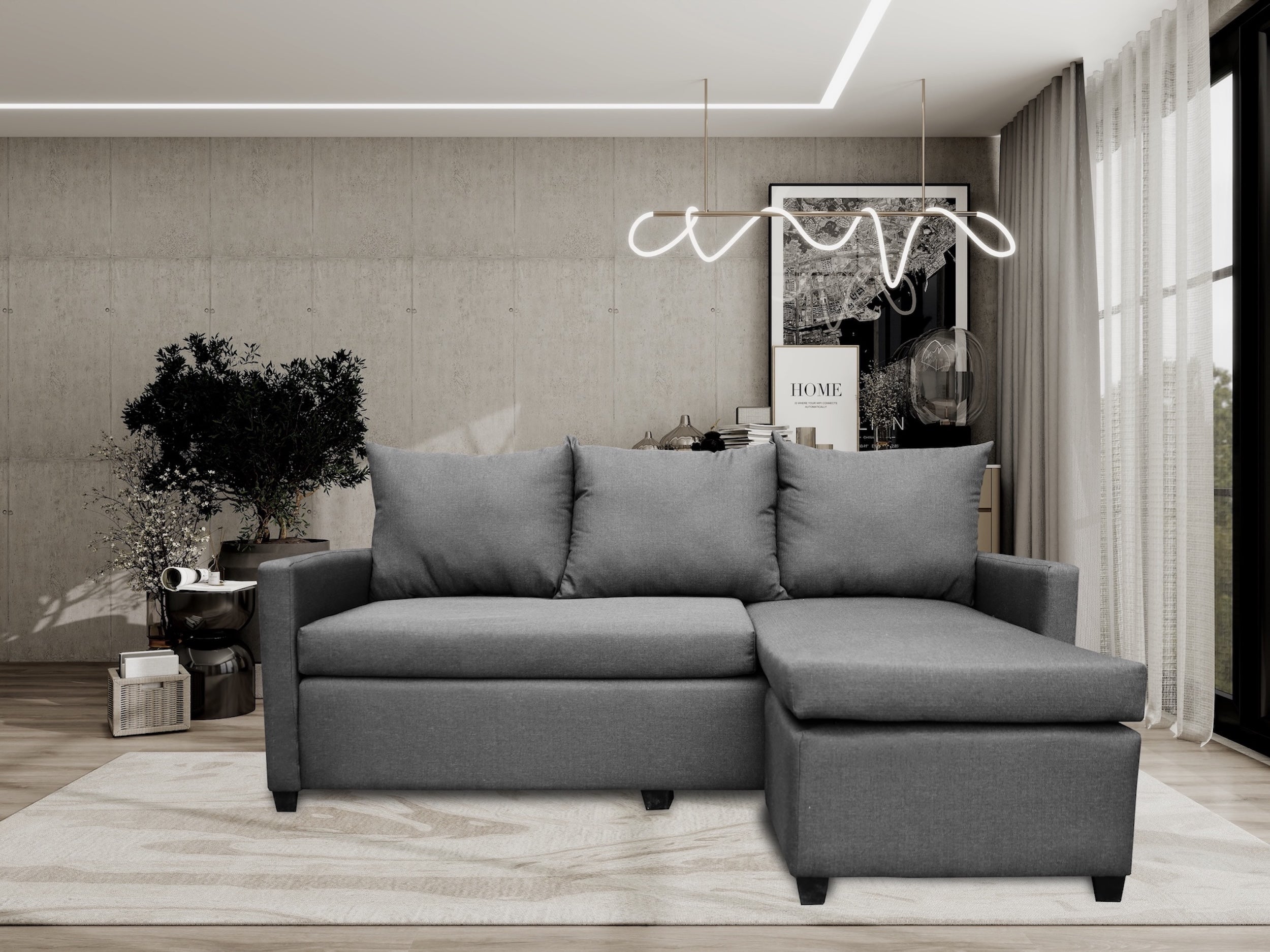 Sala Esquinera Modular El Bazar Store Vancouver Gris oxford 175x130 cm Sofa Lado derecho ó izquierdo Económica, Tela Lino